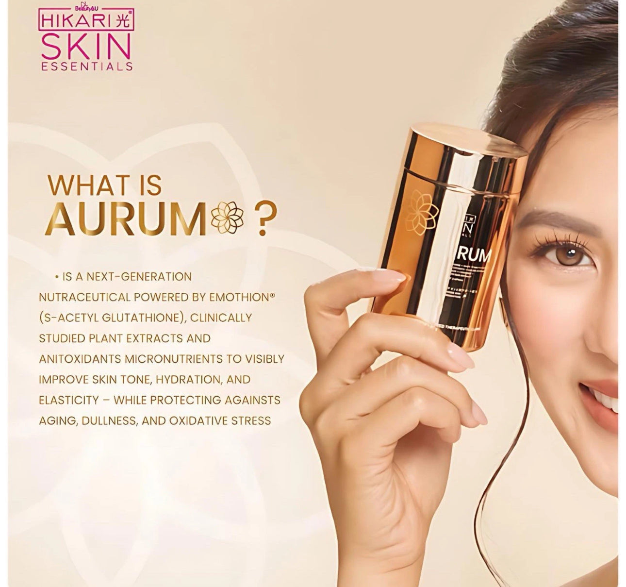 Unlock your best skin and natural radiance with Hikari Aurum Glutathione — beauty from the inside out. ✨